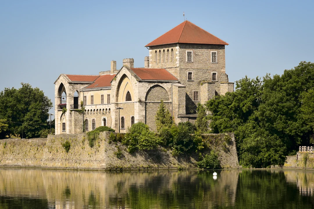 3 dni Gotický hrad so štyrmi nárožnými vežami na brehu jazera Öreg-tó postavil na starších základoch začiatkom 15. storočia kráľ Žigmund (1368–1437). Zo severnej strany ho chránilo jazero, z juhozápadu vodná priekopa. V hrade sa nachádza múzeum mesta Tata, umeleckej keramiky aj cirkevného umenia.